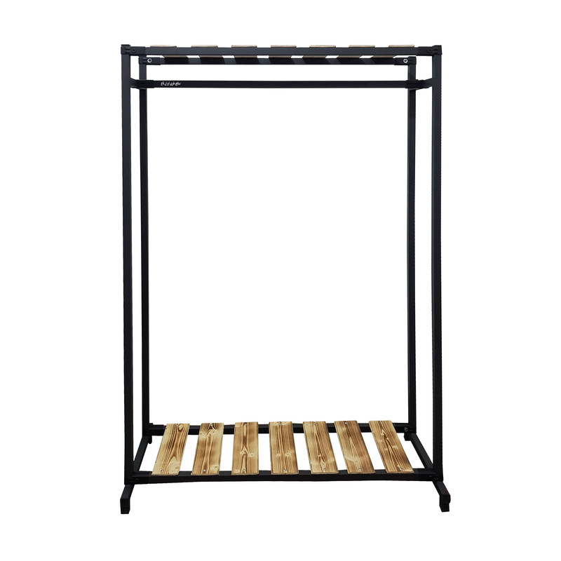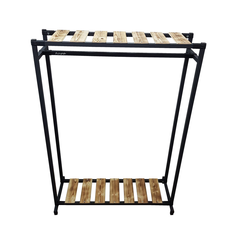 رگال لباس جا کفشی دار ایران تاج مدل 2طبقه کد 150 از قوطی اهن با ضخامت0/6ساخته شده و از رنگ استاتیک(کوره ای) برای رنگ امیزی آن استفاده شده است. هر طبقه از چوب روس رنگ شده با ضخامت 1 سانتی متر که توانایی نگه داری اجسام سبک را دارد. قابل استفاده برای فروشندگان پوشاک و مصرف خانگی میباشد. اتصالات قوی به رنگ مشکی استاتیک که قابلیت نصب اسان و مونتاژ را داراست.